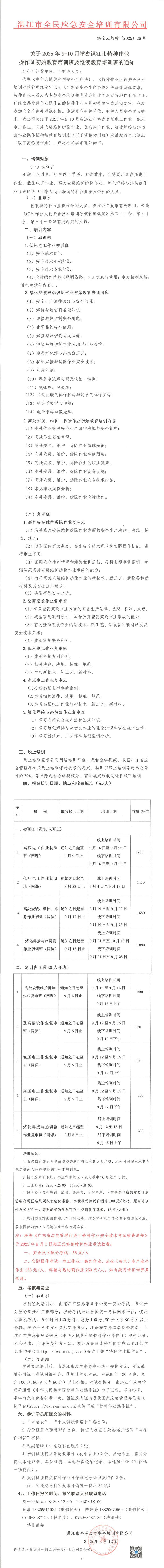 2025年9-10月高低壓電工作業、高處安裝維護拆除作業、登高架設作業、熔化焊接與熱切割作業初始教育培訓班及繼續教育培訓班的通知