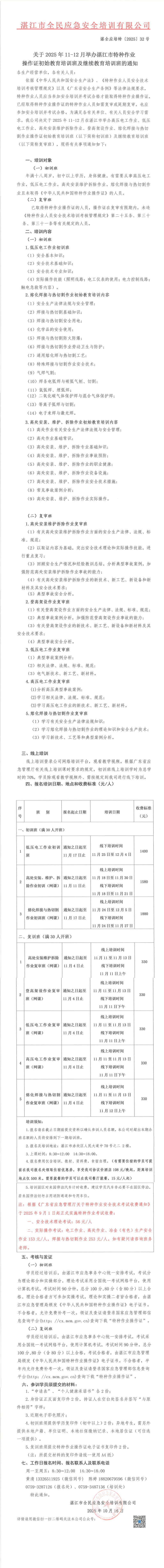2025年11-12月高低壓電工作業(yè)、高處安裝維護(hù)拆除作業(yè)、登高架設(shè)作業(yè)、熔化焊接與熱切割作業(yè)初始教育及繼續(xù)教育培訓(xùn)班的通知